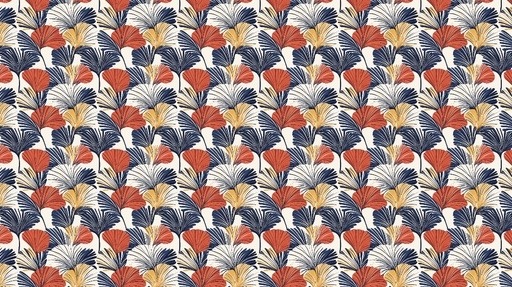 Wyświetl pełne szczegółyTapeta liści ginkgo | Delikatne wzory liści ginkgo w kolorze czarnym, różowym i żółtym