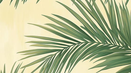 Wyświetl pełne szczegółyTapeta tropikalne liście | Liście palmy na miękkim żółtym tle