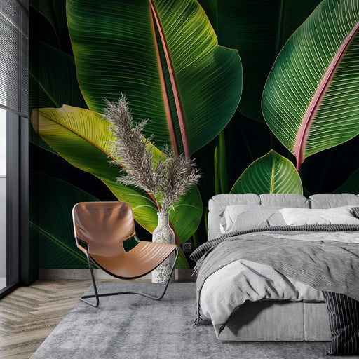 Wyświetl pełne szczegółyTapeta liscie banana | Bujne zielone liscie z akcentami zóltego