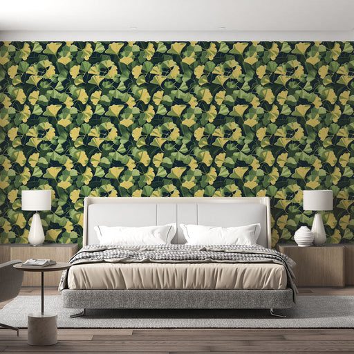 WonderMuralTa tapeta ścienna przedstawia bujny wzór liści miłorzębu w żywych odcieniach zieleni i żółci. Przywołując spokój natury, ten wzór wnosi elegancki i...