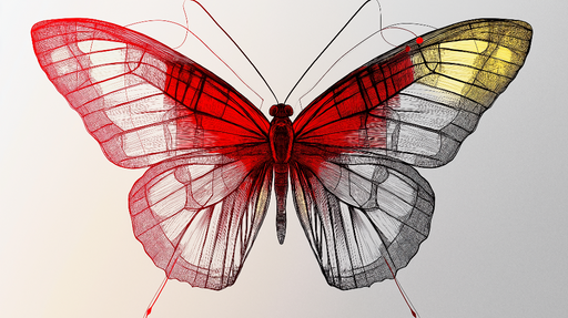 WonderMuralTa unikalna tapeta ścienna przedstawia artystyczną ilustrację motyla o delikatnie narysowanych skrzydłach, łączących odcienie czerwieni i żółci. Li...