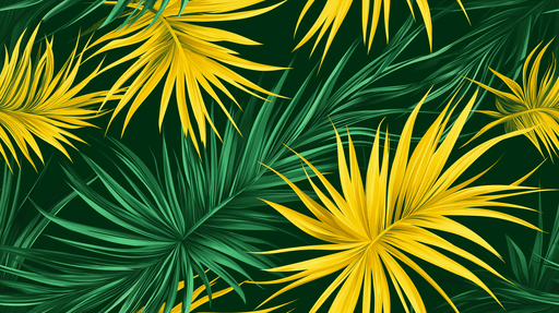 Wyświetl pełne szczegółyTapeta tropikalna | Żółte i zielone liście palmowe na ciemnym tle