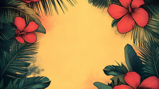 Wyświetl pełne szczegółyTapeta Tropikalna | Czerwone kwiaty i liście na żółtym tle