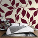 Tapeta Bordeaux z wzorami liści | Elegancki wzór czerwonych liści na kremowym tle