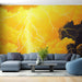 Odkryj naszą urzekającą tapetę z motywem burzy elektrycznej. Ten odważny projekt prezentuje żywe niebo, gdzie płonące żółte i pomarańczowe chmury spotykają jasne błyskawice, które oświetlają scenę. Odcienie żółci w połączeniu z głębokimi cieniami tworzą dynamiczny kontrast przyciągający wzrok.