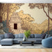 Ta tapeta prezentuje starożytny świątynię majestatycznie wkomponowaną w gęsty las, gdzie roślinność tropikalna bujnie rośnie. Delikatne i pastelowe odcienie tworzą delikatną i spokojną atmosferę, idealną do stworzenia kojącego naturalnego kącika we wnętrzu.