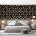 Tapeta floralna w kolorze czarnym | Delikatne gałęzie białych i złotych kwiatów na czarnym tle