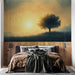 Przynieś odrobinę spokoju do swojego wnętrza za pomocą naszej tapety z samotnym drzewem. To zdjęcie przedstawia majestatyczne drzewo na wzgórzu, oświetlone miękkim światłem wschodu słońca. Ciepłe i kojące kolory tworzą atmosferę spokoju i kontemplacji, idealną do salonu lub sypialni.
