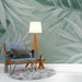 Ta tapeta podkreśla elegancki wzór tropikalnych liści w odcieniach miętowej zieleni, tworząc kojącą i odświeżającą atmosferę. Delikatne liście są zilustrowane z teksturowanymi detalami, oferując fascynującą wizualną głębię, która przyciąga wzrok.