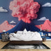 Tapeta wulkan | Stylizowana erupcja wulkanu z kolorowymi chmurami