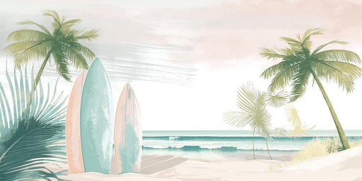 The pastel tones and watercolor details bring a delicate and peaceful ambiance to any room. The charming presence of the baby Diplodocus, with its slender silhouette and curious posture, evokes a sense of gentleness and fascination. This panoramic dinosaur wallpaper is ideal for a child's bedroom, playroom, or creative space, where it will add a touch of magic and daydreaming.