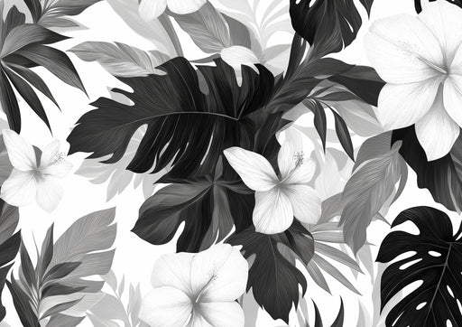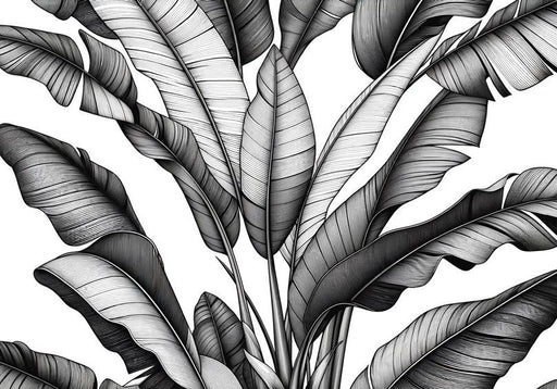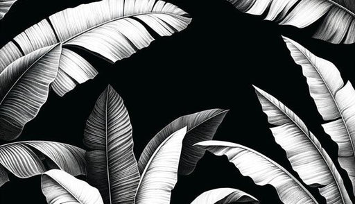 Black and White Foliage Mural Wallpaper | Palm Leaf Jungle Massif