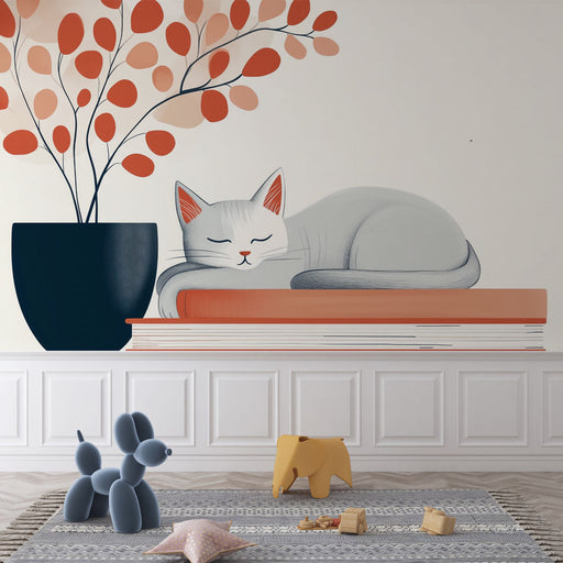 Cat Mural Wallpaper | Drawing on a Neutral Background