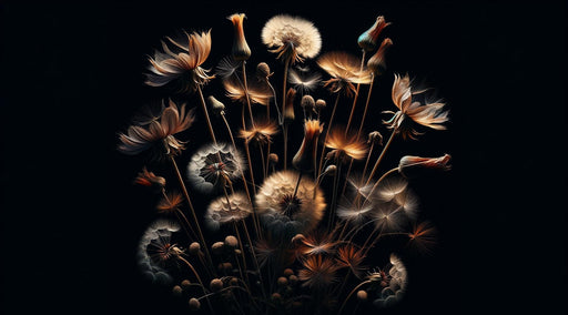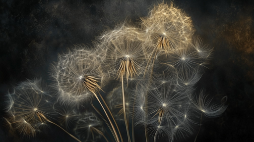 Dandelion Mural Wallpaper | Bright Flowers and Petals on Mysterious Black Background