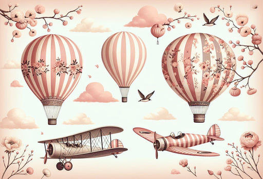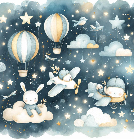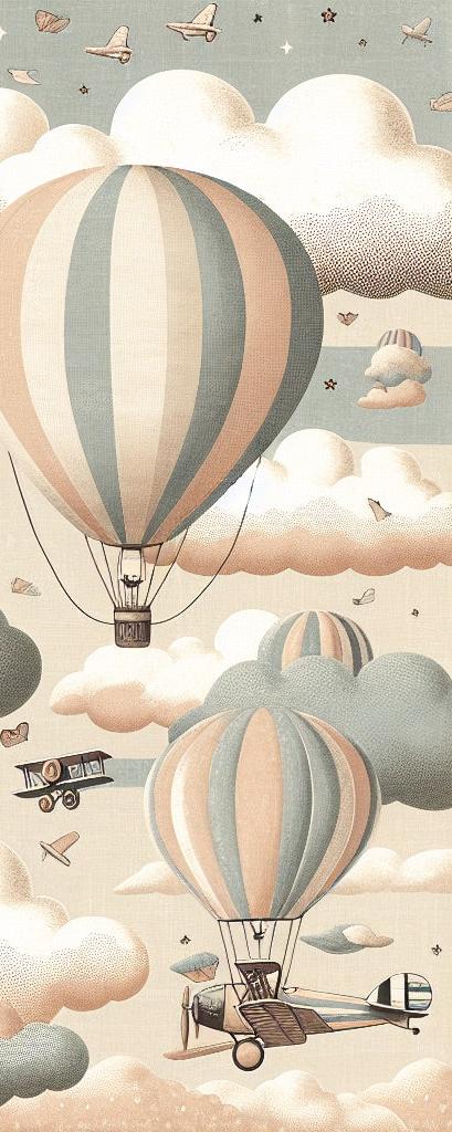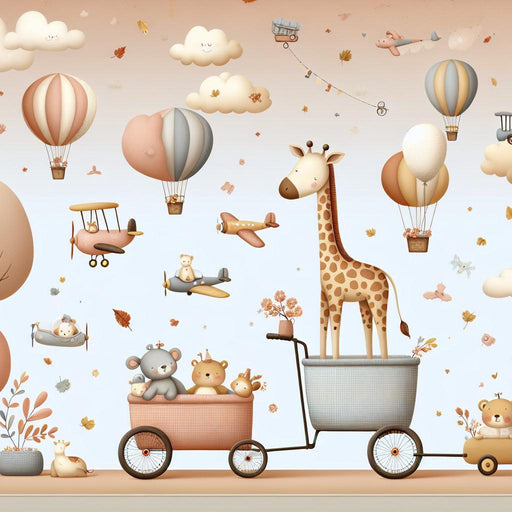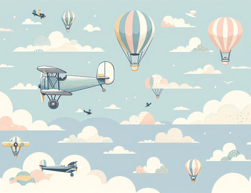 The brilliance of this Children's hot air balloon wallpaper invites daydreaming and relaxation, offering a lively yet calming decor, ideal for a living room or bedroom. The mirror effect of the water in this Baby hot air balloon wallpaper adds a dimension of depth and serenity, transforming each wall into an open window to a world of peace and natural beauty.
