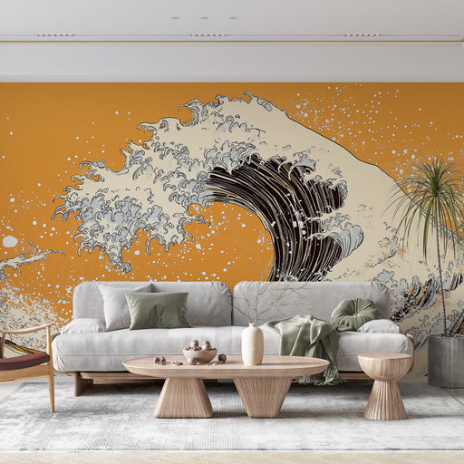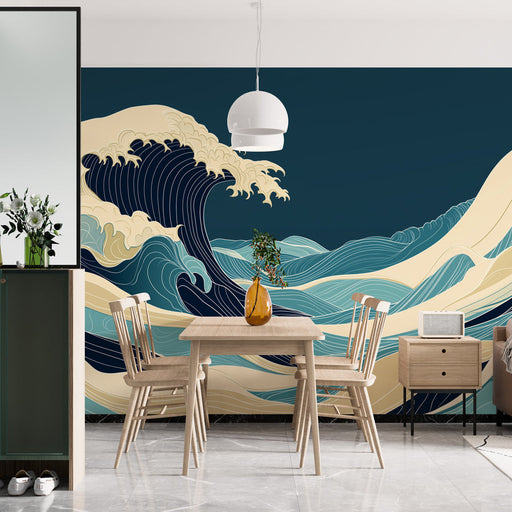 This Japanese wave wallpaper transforms any space into a dynamic scene of living art, where nature manifests with power and elegance. The snow-capped peaks in the background bring a touch of tranquility, balancing the raw energy of the sea with the serenity of the still mountains. Ideal for those seeking to infuse their home with a spirit of adventure and wonder, this Japanese-inspired wallpaper is a bold statement that celebrates the constant movement and beauty of nature.