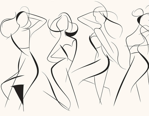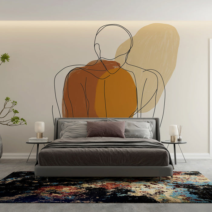 This minimalist abstract mural wallpaper features a clean design, characterized by stylized silhouettes in warm tones of burnt orange and beige. The use of fluid lines creates a sense of calm and serenity, while the open composition evokes modernity and sophistication.