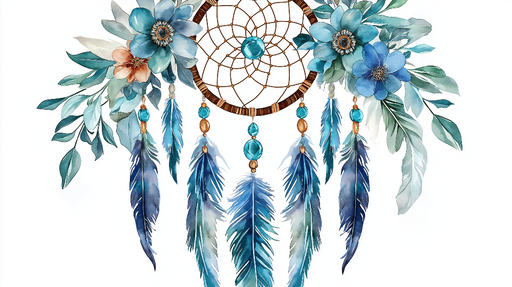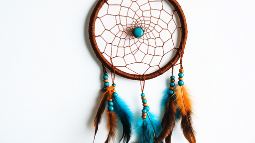 The vibrant feathers, ranging from turquoise to warm brown, symbolize fluidity and freedom, while the intricate design of the web inside is meant to capture good energies and ward off bad dreams.