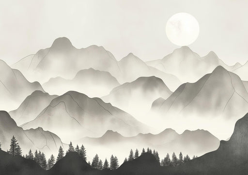 This mural wallpaper features a fantastic landscape with floating mountains adorned with majestic trees, creating a dreamlike and enchanting atmosphere. The shades of green and orange of the foliage contrast with the gray rocks and light blue sky, offering an ambiance that is both soothing and dynamic.