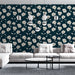Mural Wallpaper floral | White flowers on deep navy blue background
