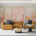 Mural Wallpaper pink and gold foliage | Artistic panels with soft shades