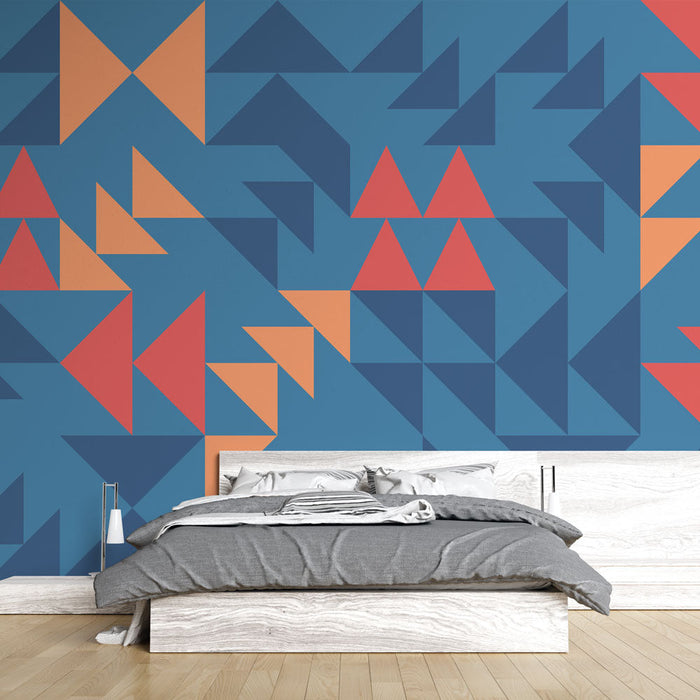 Mural Wallpaper Geometric | Blue, Red and Orange Modern