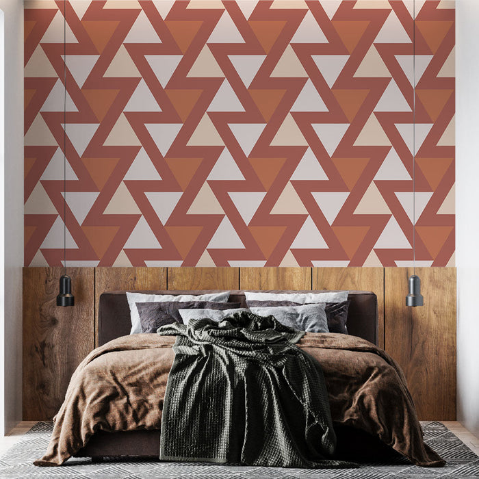 Discover our geometric mural wallpaper with an elegant chevron pattern in brick and beige tones. Ideal for adding a modern touch to your living room or office, this designer mural wallpaper will bring depth and style to any space.