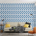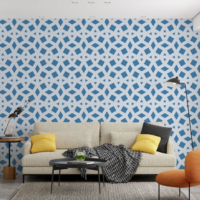 This geometric mural wallpaper features an elegant blue and white pattern that adds a contemporary and sophisticated touch to any room. Perfect for those who appreciate modern and chic design, this pattern introduces a dynamic ambiance without being overwhelming. Transform your living room, office, or bedroom with this captivating and unique wall decoration.