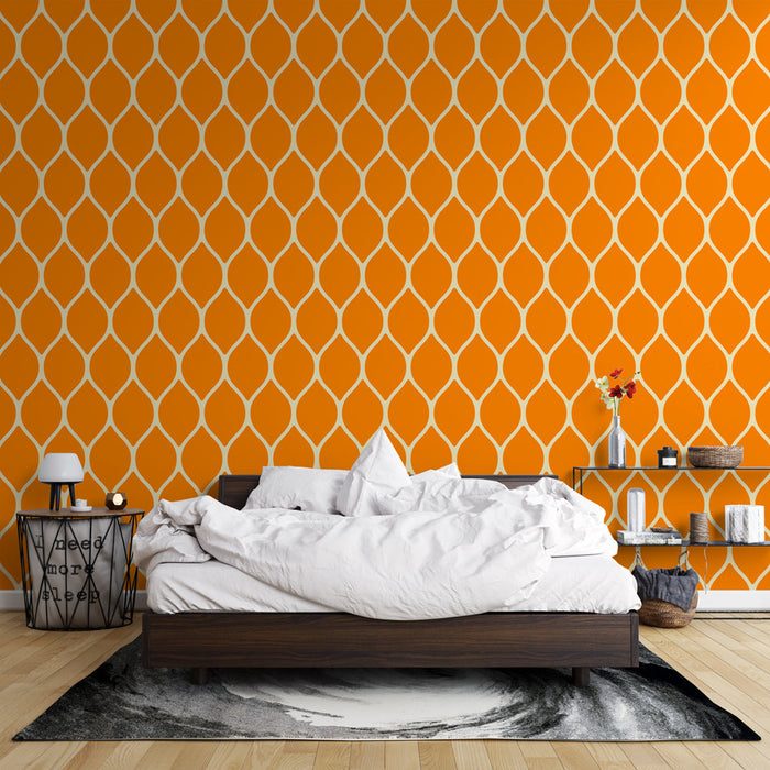 Add a touch of modernity and warmth to your space with our geometric mural wallpaper in orange and cream. This bold and dynamic design is ideal for bringing your walls to life, creating a welcoming and lively atmosphere.