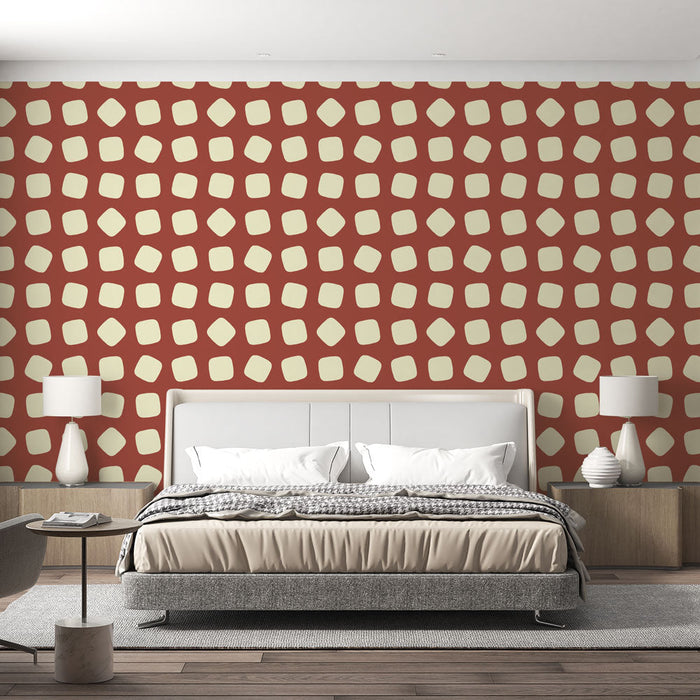 This geometric mural wallpaper is distinguished by a pattern of irregular diamonds in red and cream tones. Perfect for creating a warm atmosphere in your living room or bedroom, it brings a modern and artistic touch to your interior decoration.