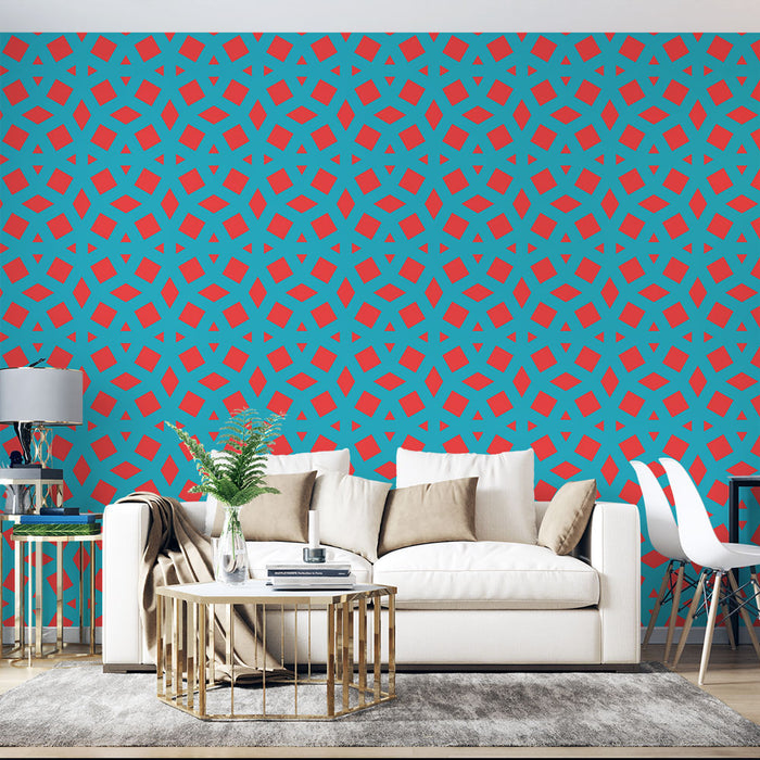 Discover our turquoise and red geometric mural wallpaper that will add a touch of boldness and modernity to any room. With its striking design and vibrant colors, this mural wallpaper is perfect for those who want to bring dynamism and color to their interior decor.
