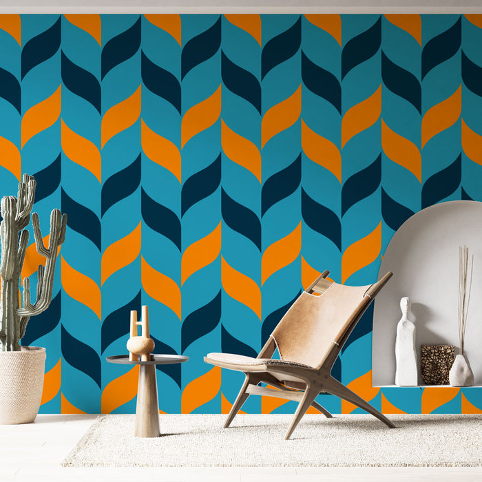 Mural Wallpaper geometric | Orange and blue wavy patterns