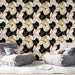 To accompany this mural wallpaper, opt for neutral colors such as white, gray, or woody tones that will enhance the brilliance of the pattern without overwhelming the space. Golden and black accessories will beautifully complement the overall look, reinforcing the elegant aesthetic.