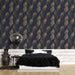 Mural Wallpaper golden leaves | Pattern on midnight blue background