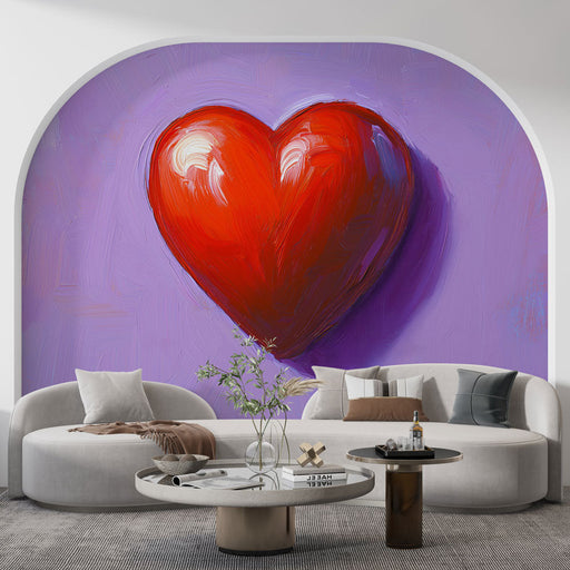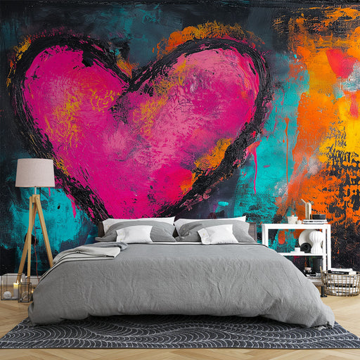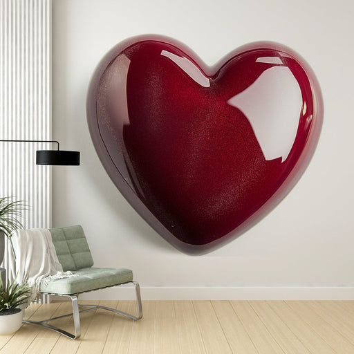This striking mural wallpaper features a black and white heart, cracked with deep fissures, symbolizing both the duality and fragility of emotions. The contrast between the pure white and intense black gives a striking visual depth that immediately draws attention. The rough and broken texture of the heart adds a touch of authenticity to this bold design.