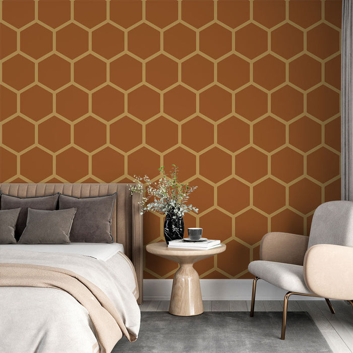Mural Wallpaper hexagonal | Honeycomb design terracotta and beige