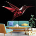 Mural Wallpaper Hummingbird | Red Crystal Hummingbird in a Modern Geometric Design