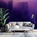 To harmonize this mural wallpaper, opt for neutral shades like white, light gray, or natural wood materials, which will highlight the deep colors without weighing down the space. Touches of purple in the accessories will perfectly complement this decoration.
