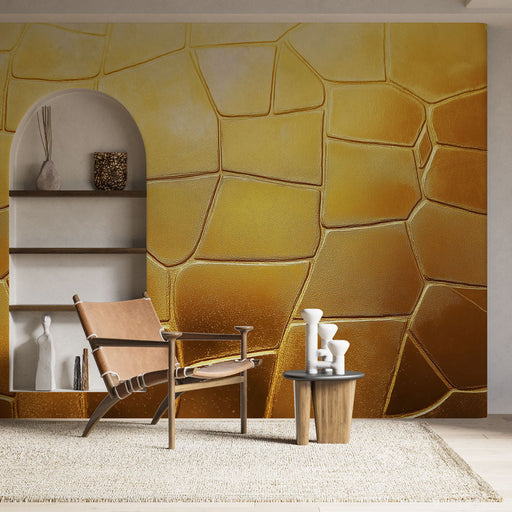 This mural wallpaper mimics an aged leather texture, bringing a luxurious and warm feel to your interior. The shades of brown and black, with their worn details, create a captivating visual effect that evokes the authenticity and character of a natural material.