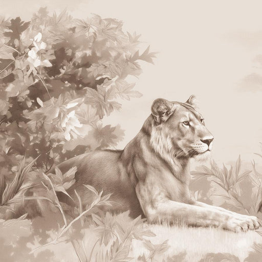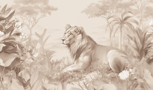 Discover our spectacular mural wallpaper featuring an iconic lion, richly detailed in red and white, surrounded by stylized clouds. This bold design captures the power and majesty of the lion while adding a modern artistic touch to your space.