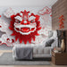 Mural Wallpaper lion | Red and white embossed lion decorations