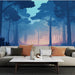 Mural Wallpaper misty forest | A dreamlike landscape with bluish hues and tree silhouettes