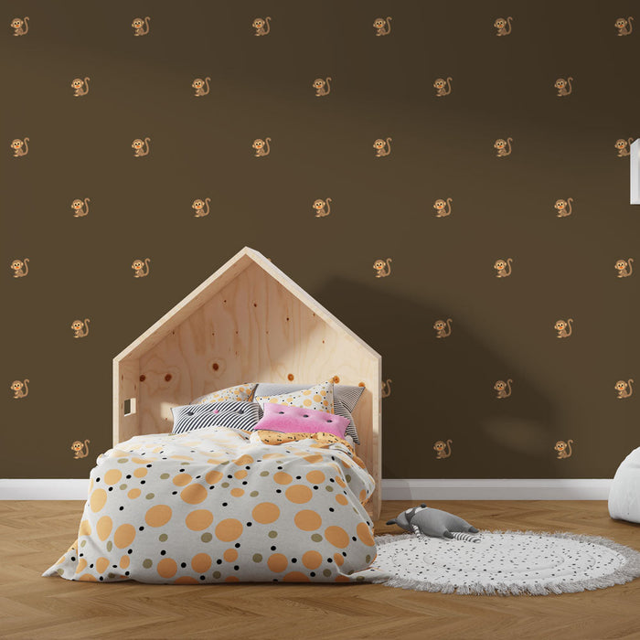 Discover our mural wallpaper monkey with a fun and light pattern featuring small cartoon monkeys on a soothing brown background. Perfect for bringing a touch of joy and humor to a child's room or play area.