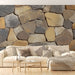This mural wallpaper features a captivating design composed of natural stones in warm shades ranging from gray to beige, bringing a rustic and warm ambiance to any interior. The irregular shapes of the stones create a dynamic visual effect, perfectly imitating a real stone wall.