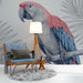 Mural Wallpaper parrot | Artistic pattern of a colorful parrot on a white background