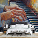 Mural Wallpaper piano | Hands on a piano with a vibrant artistic style