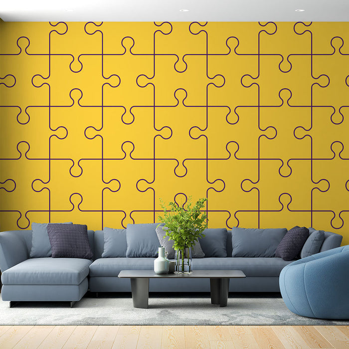 Transform your walls with our mural wallpaper puzzle with a modern geometric design. This captivating pattern in vibrant yellow brings a playful and dynamic touch to any room.