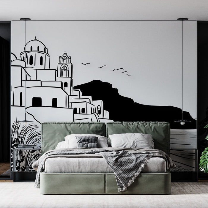 Mural Wallpaper Santorini | Monochrome illustrations of a Mediterranean city