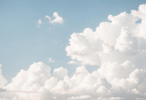 This captivating Mural Wallpaper features an aerial view of fluffy clouds scattered across a light blue sky. The texture seems almost tangible, with each touch of white and blue blending to create an impression of depth and movement. The overall effect is both soothing and invigorating, ideal for creating an atmosphere of serenity.