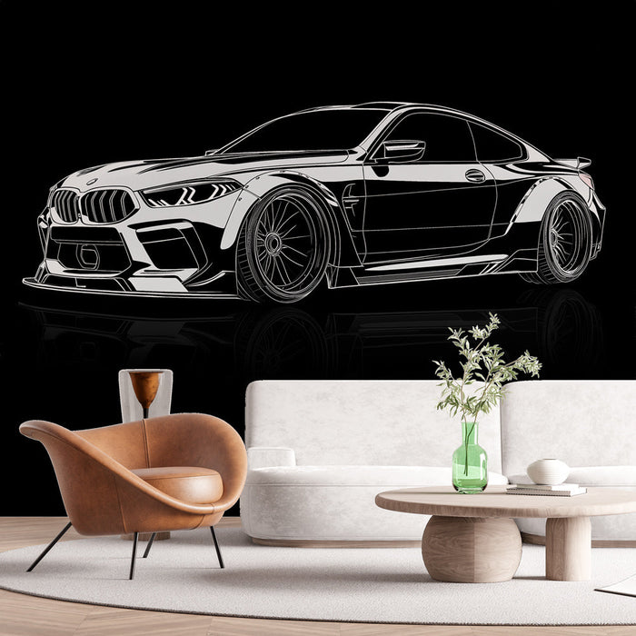 Mural Wallpaper sports car | Stylized BMW design in black and white